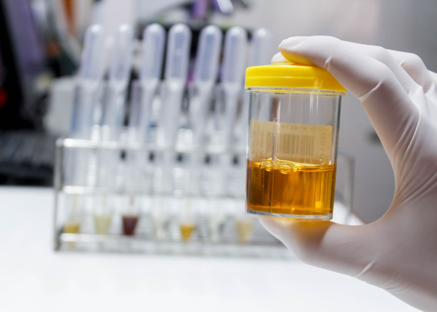 Orina casual (Ayuno no necesario) Contenedor plástico boca ancha, o bolsa recolectora para uso pediátrico.